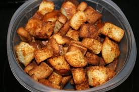 Faites chauffer doucement l'huile, déposez le pain. mélangez afin qu'il ne brûle pas sur un côté. Ajoutez au bout de cinq minutes les condiments. Faire dorer jusqu'à ce que les croûtons aient tous une belle couleur. Déposez ensuite dans un bol préalablement tapissé d'un papier absorbant afin d'enlever l'excès de gras. Servez avec une soupe, une salade composée, ou en accompagnement d'une poêlée de légumes...